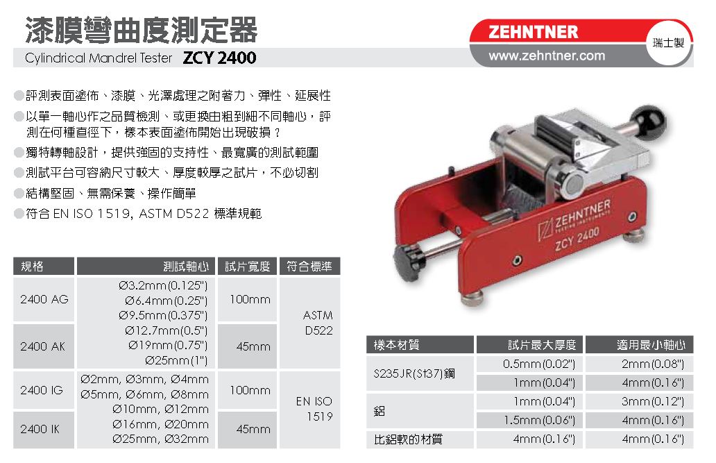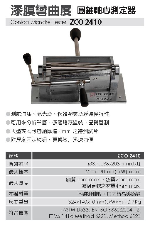 ZCY 2400/ZCO 2410/BD 2000 漆膜彎曲度儀
