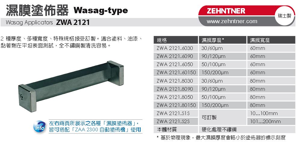 ZUA 2000 可調(diào)式/四面式/方框式 濕膜塗佈器