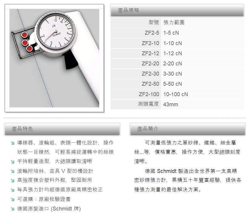 SCHMIDT ZF2 紗線張力計(jì)/機(jī)械式