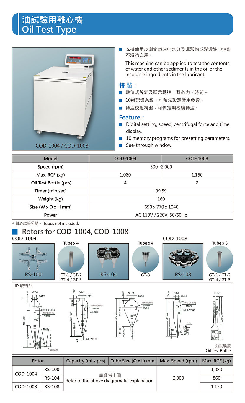 COD-1004/1008 油試驗用離心機