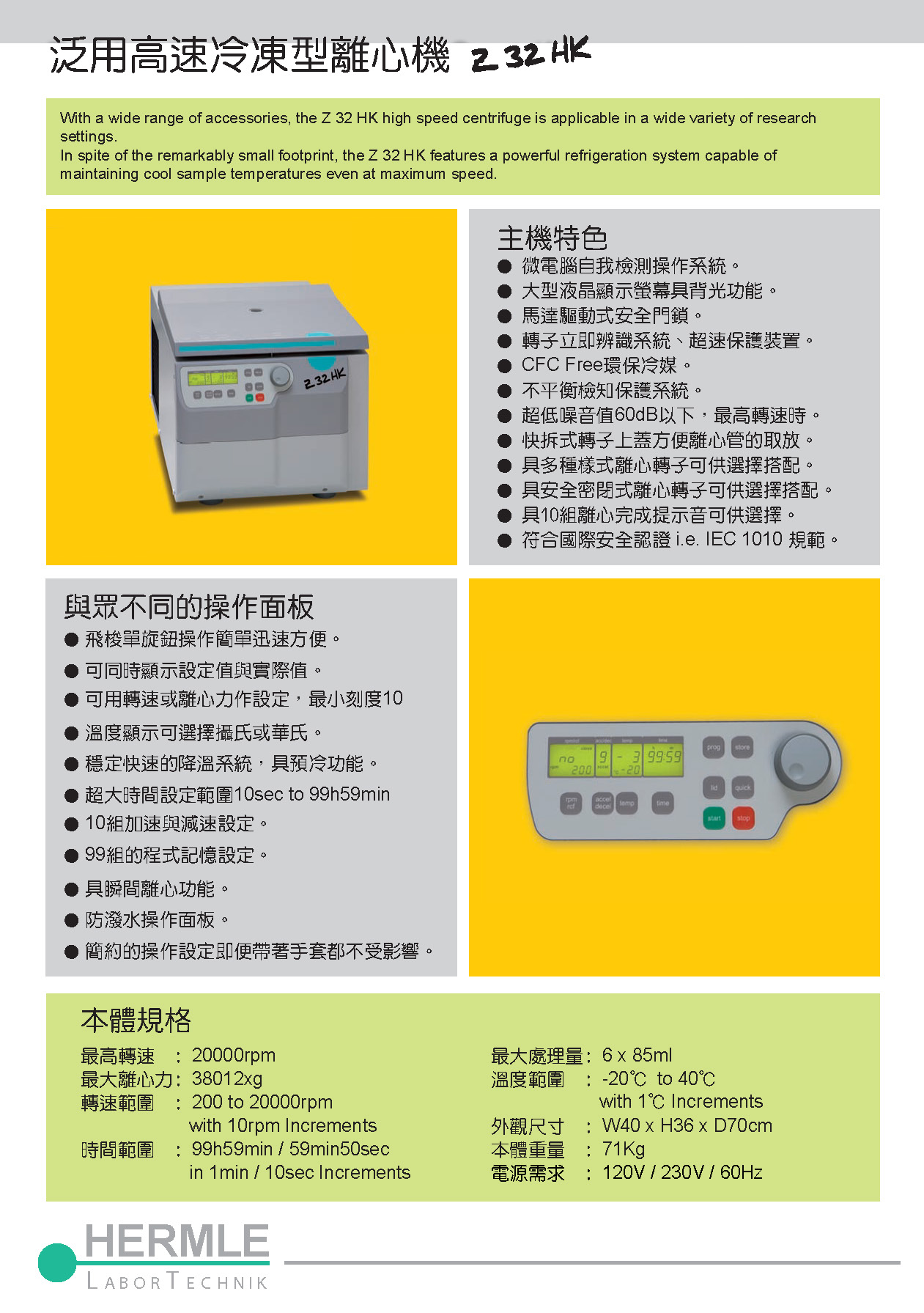 德國Hermle Z32HK 泛用高速冷凍型離心機(20000rpm)