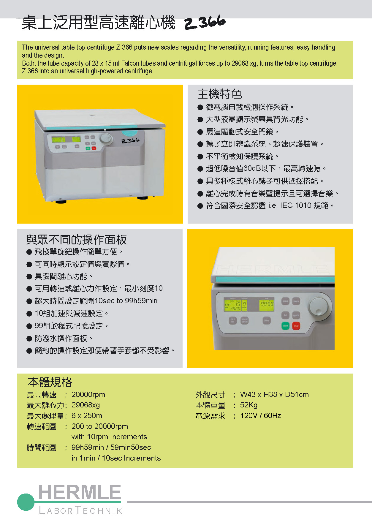 德國Hermle Z366/K 泛用高速型大容量離心機/冷凍大容量離心機