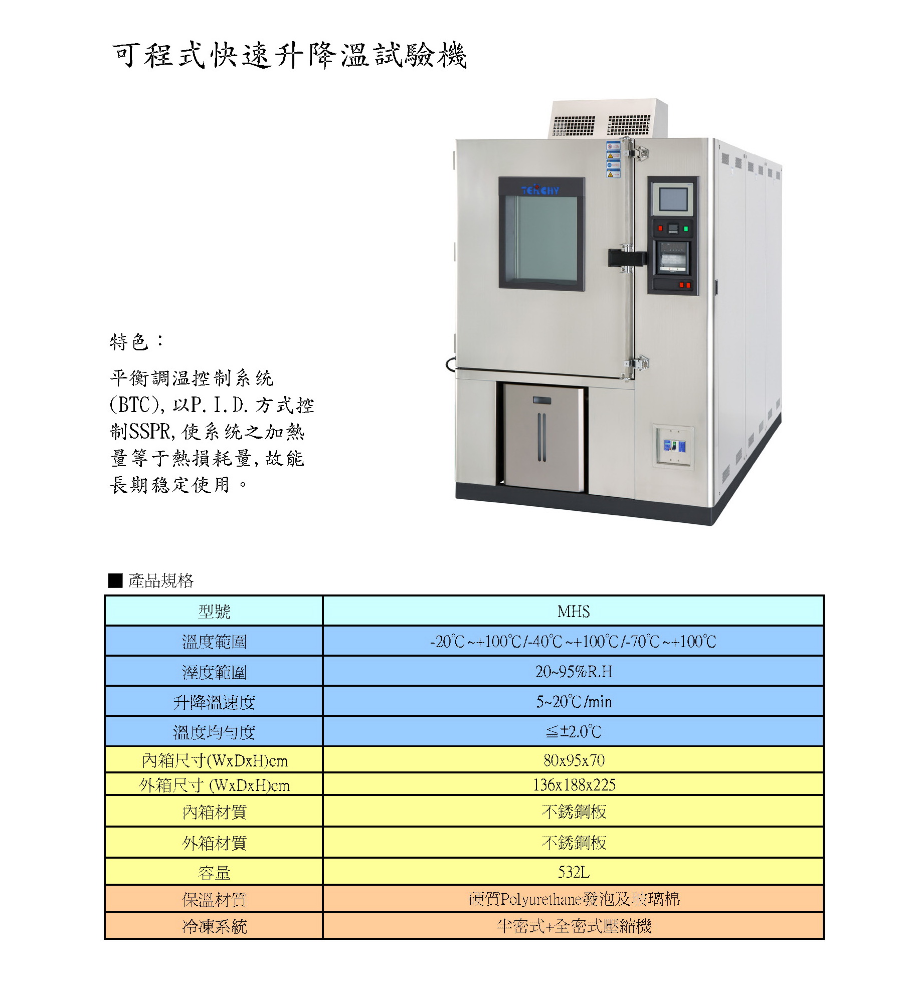 MTS/MHS 可程式快速升降溫度/濕度試驗機(jī)