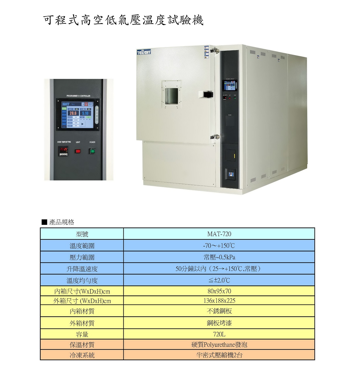 MAT-720 可程式高空低氣壓溫度試驗(yàn)機(jī)