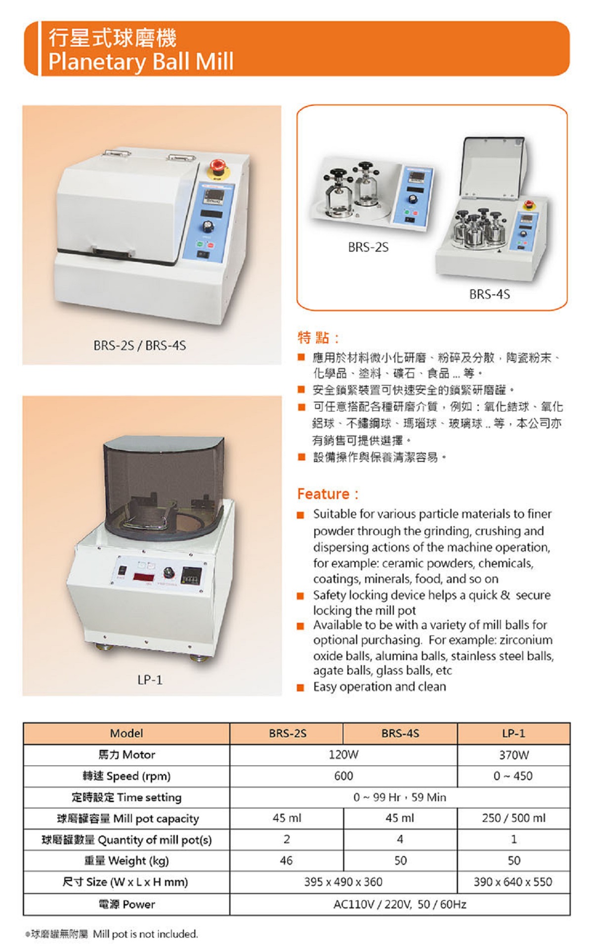 BRS-2S/4S/LP-1 行星式球磨機(jī)