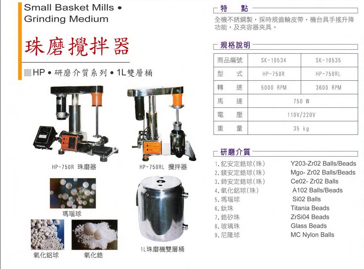 HP-750R/RL 珠磨攪拌器