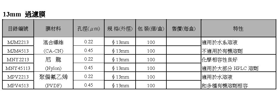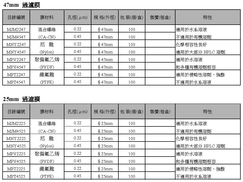 13/25/47mm Membranes 過濾膜