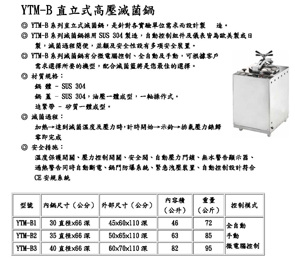YTM-B1/2/3 直立式高壓滅菌鍋
