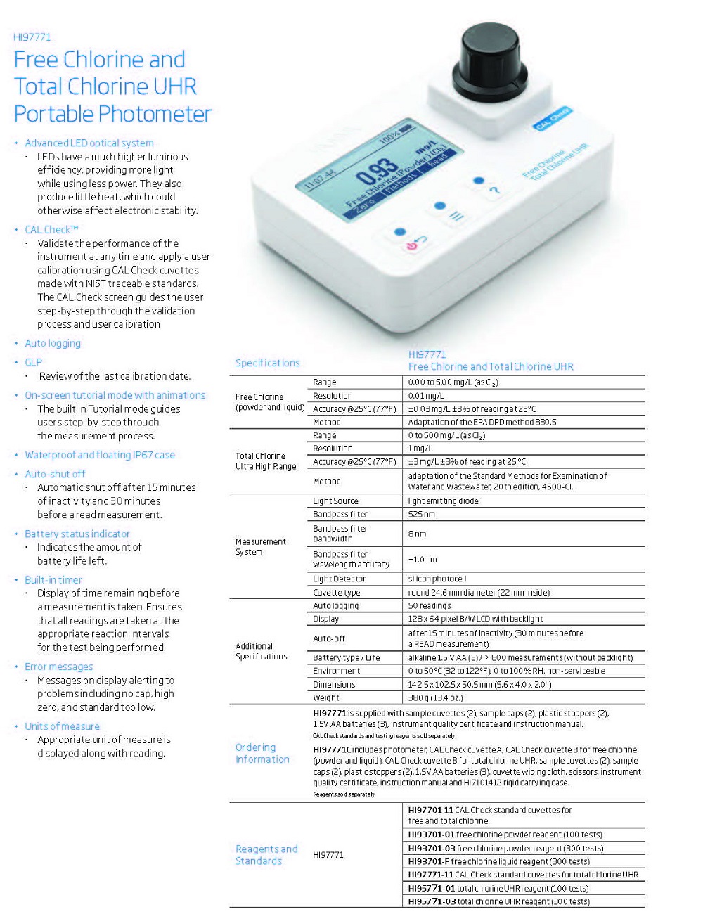 HI97771 超高濃度氯離子分光比色計(jì)0-500ppm