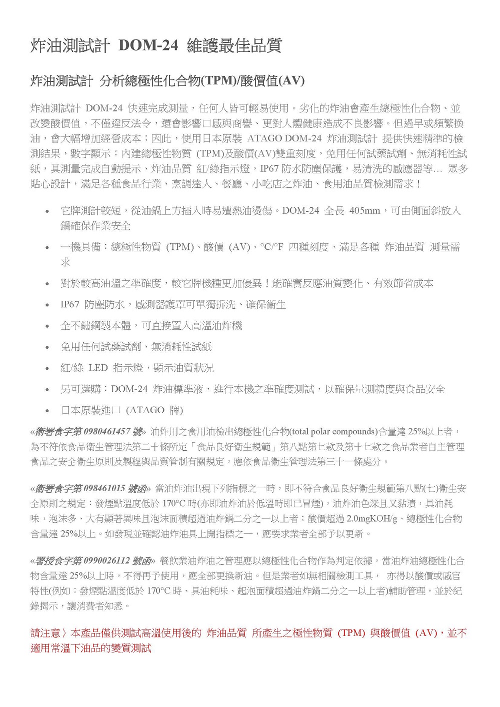 Atago DOM-24 食用油炸酸價(jià)測試計(jì)