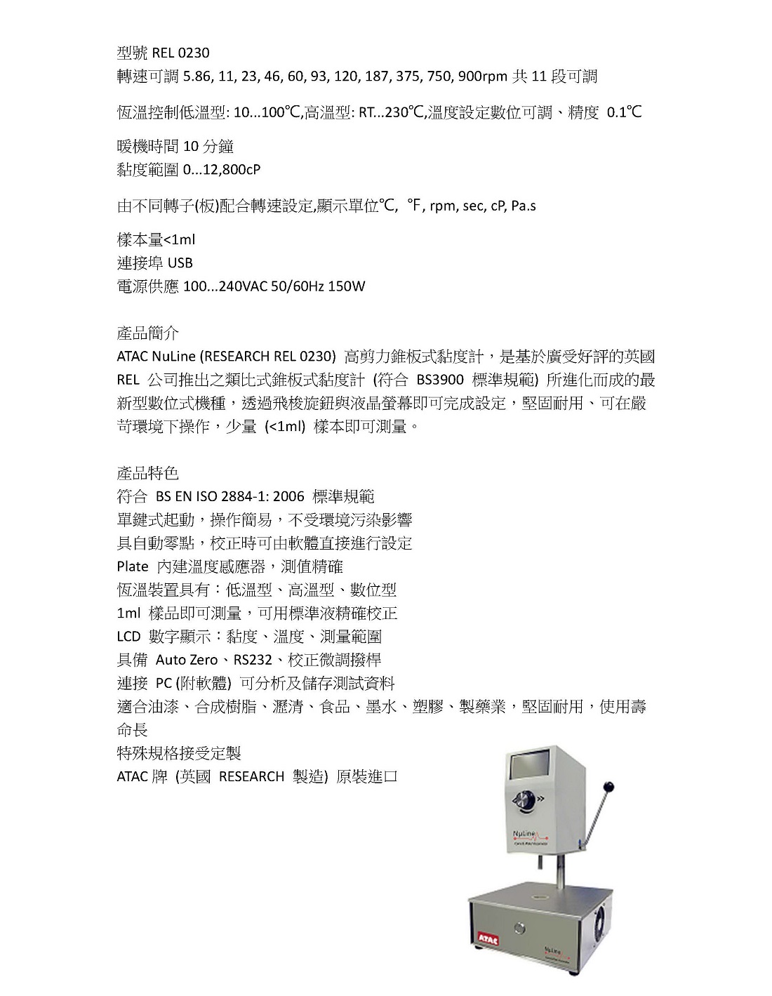 ATAC-RESEARCH REL-0230 高剪力數位錐板式黏度計