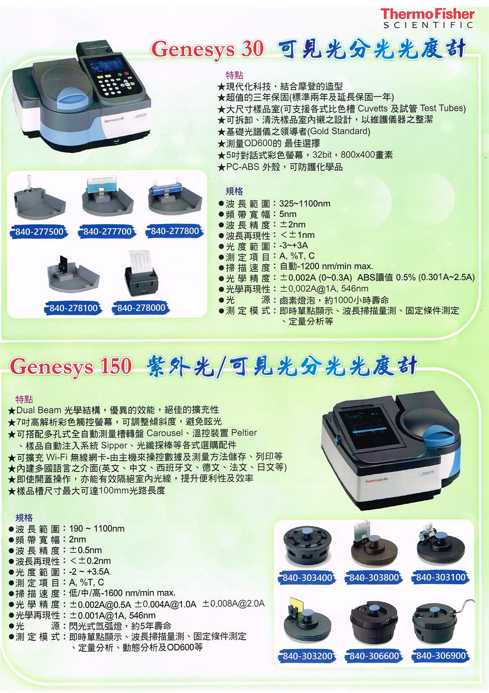 Thermo Genesys 30/150 可見光/紫外光 分光光度計