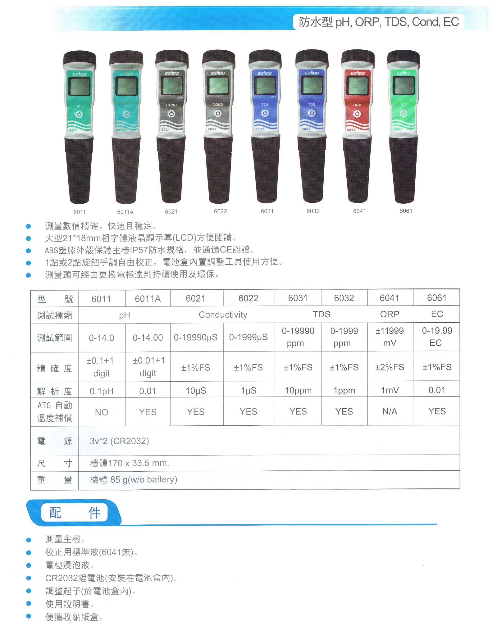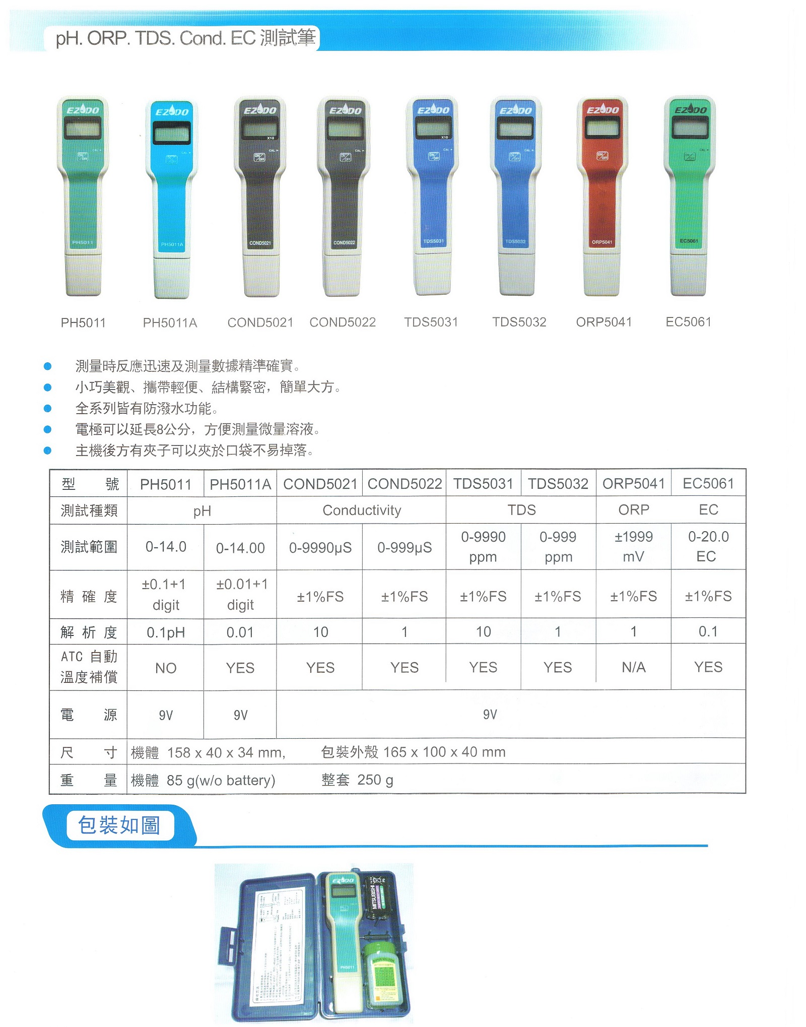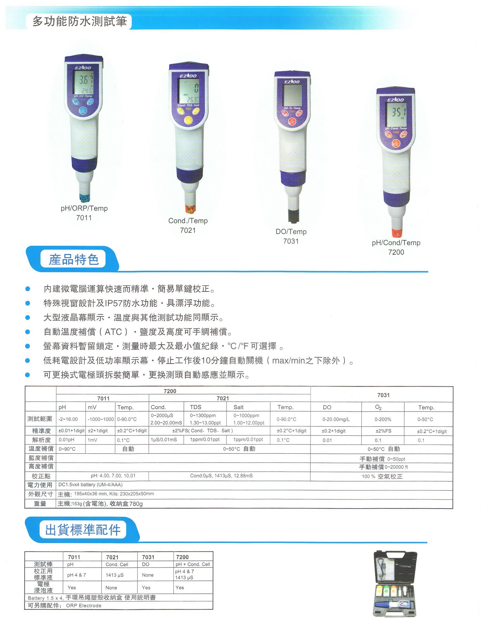pH/ORP/TDS/EC 防水型多功能水質測試筆