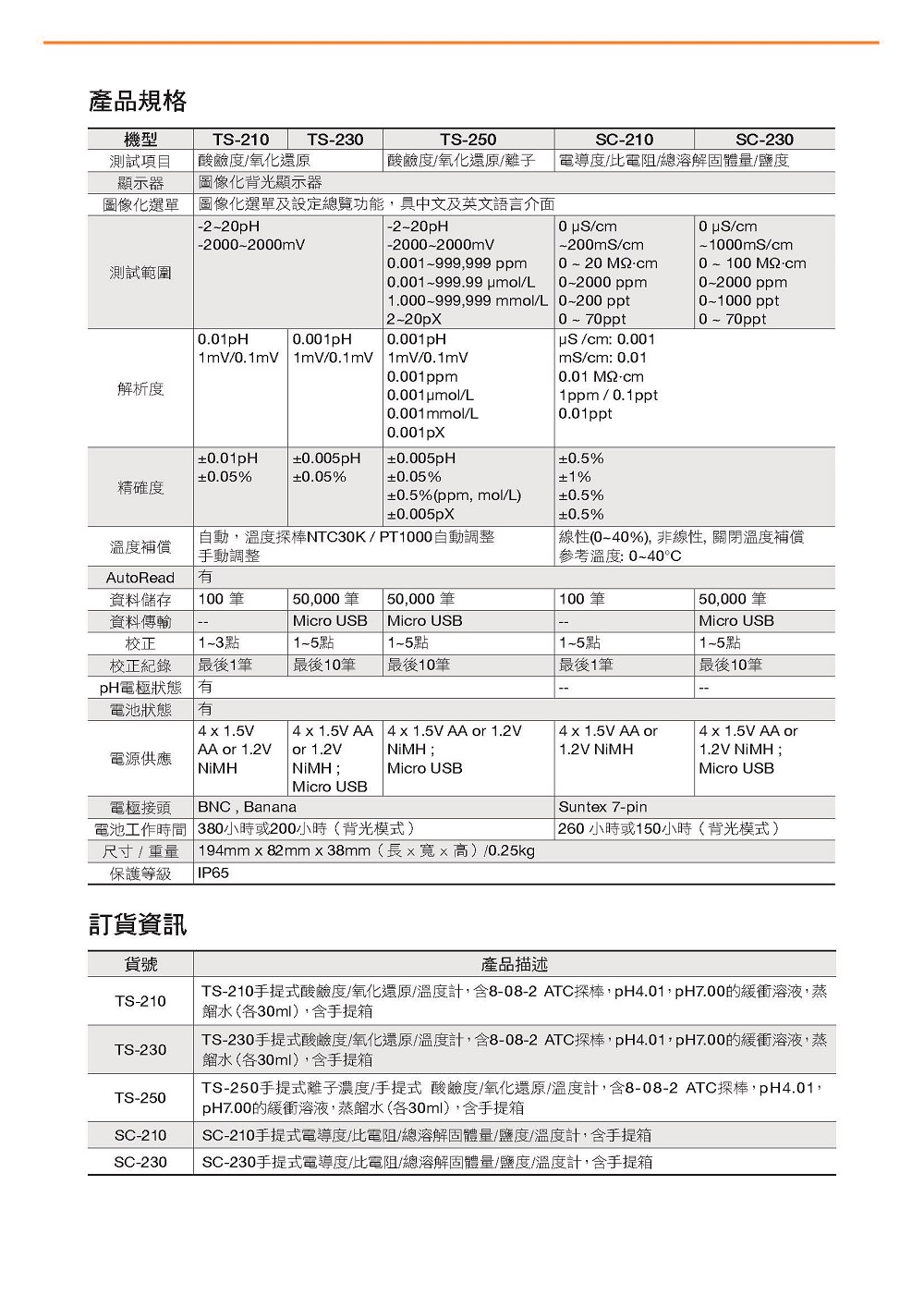 TS-210/230/250 ,SC-210/230 手提式pH/電導(dǎo)度計(jì)