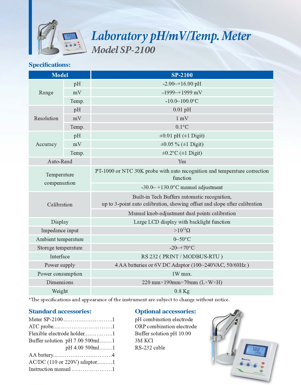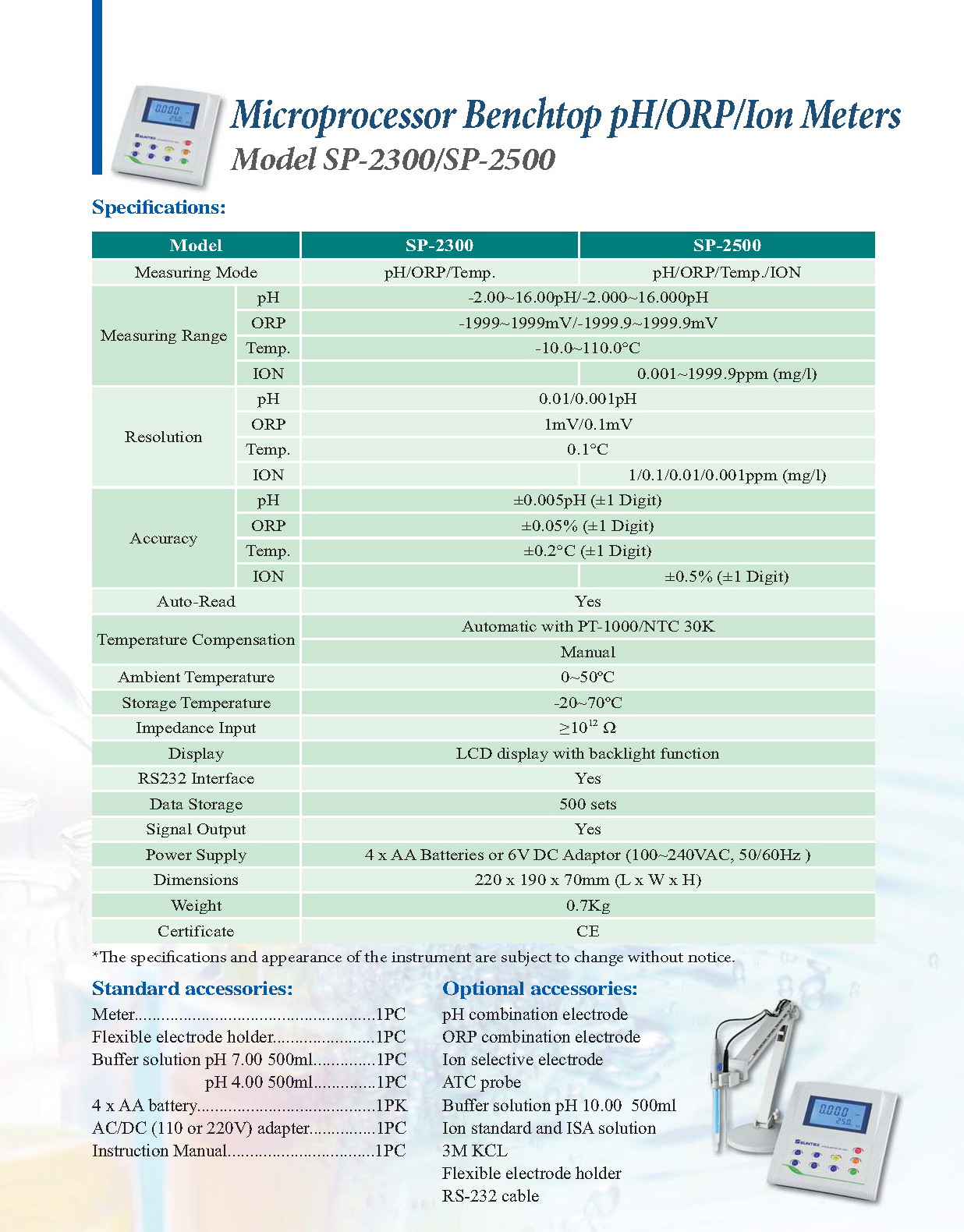 SP-2100/2300 /2500 桌上型pH計(jì)