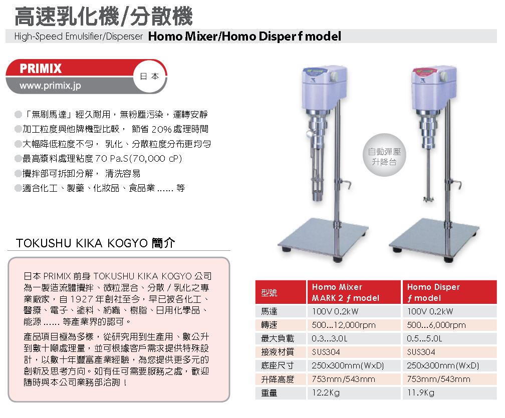 T.K HomoMixer/Homo Disper f model 高速乳化機/分散機