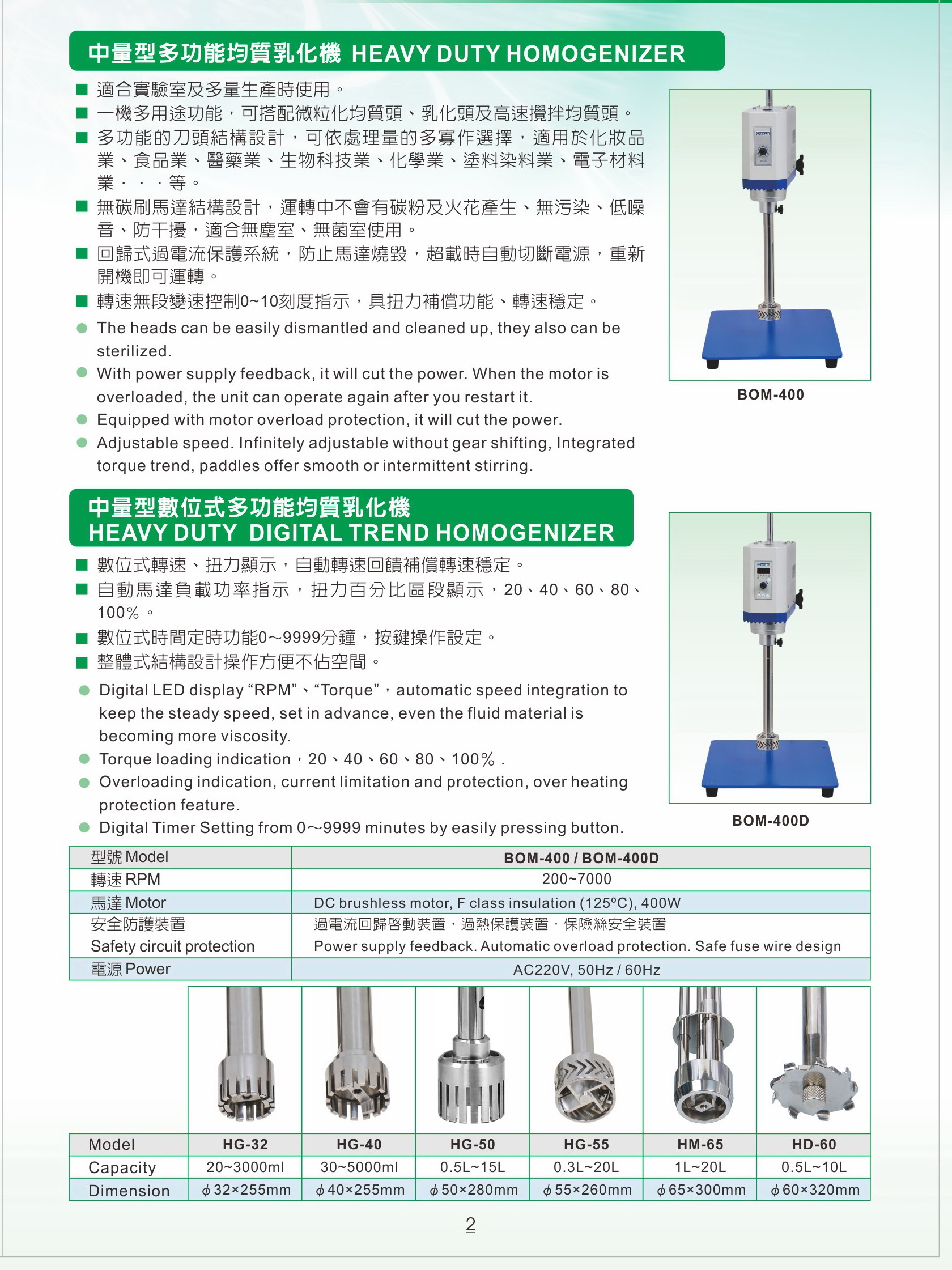 BOM-300D/400D 多功能乳化均質(zhì)機(jī)