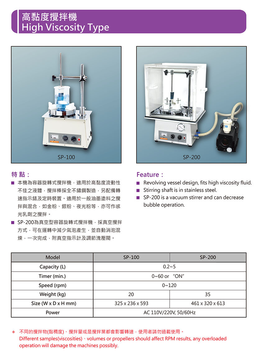 SP-100/200 高黏度/真空型容器旋轉(zhuǎn)式攪拌機(jī)